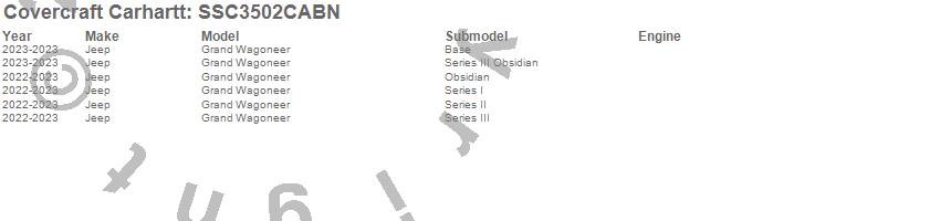 Below is an abbreviated list of applications for the Covercraft Carhartt SeatSaver.Grand Wagoneer, Grand Wagoneer L, Jeep, 2025, 2024, 2023, 2022