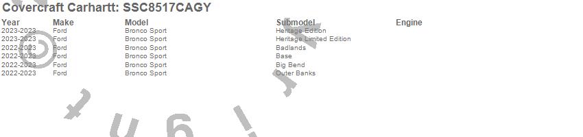 Below is an abbreviated list of applications for the Covercraft Carhartt SeatSaver.Bronco Sport, Ford, 2023, 2022