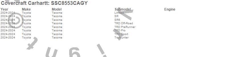 Below is an abbreviated list of applications for the Covercraft Carhartt SeatSaver.Tacoma, Toyota, 2025, 2024