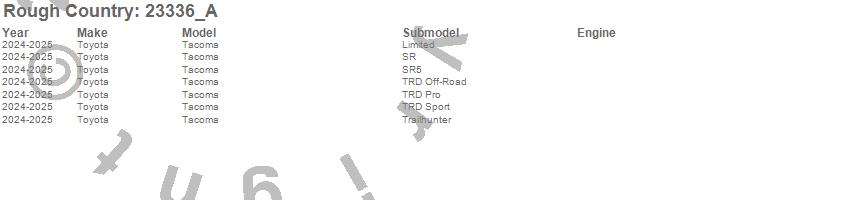 Brand: Rough CountryPart Number: 23336_AShock Absorber Type: Rear - 5-7 in.UPC: 840269966231