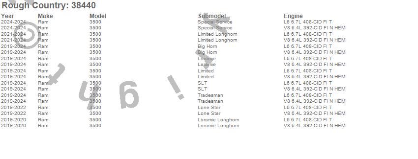Below is an abbreviated list of applications for the Suspension Lift Kit.3500, Ram, 2024, 2023, 2022, 2021, 2020, 2019