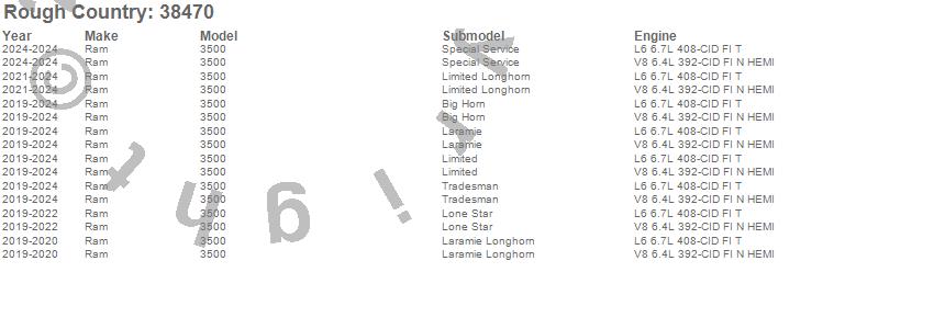 Below is an abbreviated list of applications for the Suspension Lift Kit.3500, Ram, 2024, 2023, 2022, 2021, 2020, 2019
