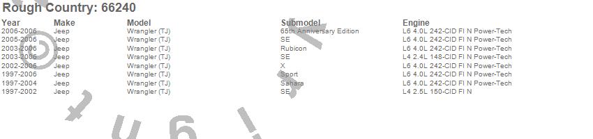 Below is an abbreviated list of applications for the Suspension Lift Kit.Wrangler (TJ), Jeep, 2006, 2005, 2004, 2003, 2002, 2001, 2000, 1999, 1998, 1997
