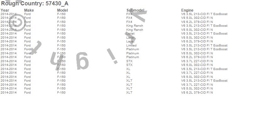 Below is an abbreviated list of applications for the Suspension Lift Kit.F-150, Ford, 2014