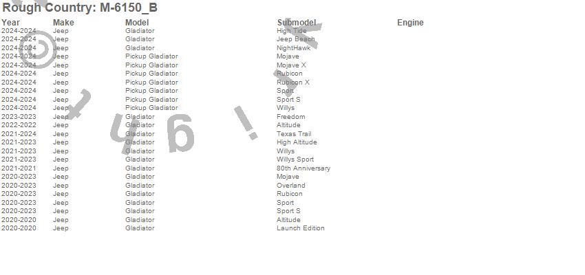 Brand: Rough CountryPart Number: M-6150_BFloor Mat Set Type: UPC: 840269969645