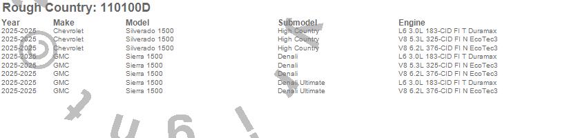 Below is an abbreviated list of applications for the Suspension Lift Kit.Sierra 1500, Silverado 1500, Chevrolet, GMC, 2025