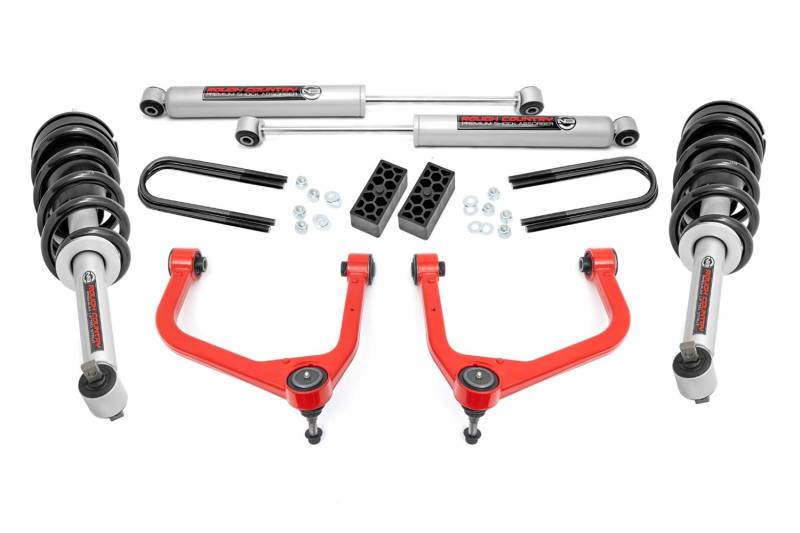 Buy this Suspension Lift Kit Rough Country 110431RED 3.5 in. Lift - N3 Struts - Red Forged Upper Control Arms here at SVCustoms.com an authorized Rough Country Lift Kit-Suspension dealer and distributor.