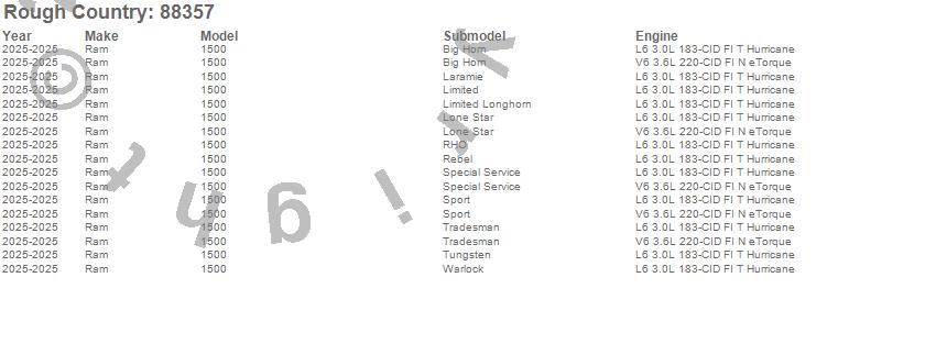 Below is an abbreviated list of applications for the Suspension Lift Kit.1500, Ram, 2025