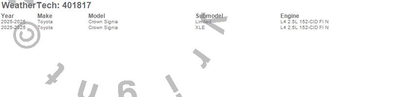 Below is an abbreviated list of applications for the Cargo Liner.Crown Signia, Toyota, 2025