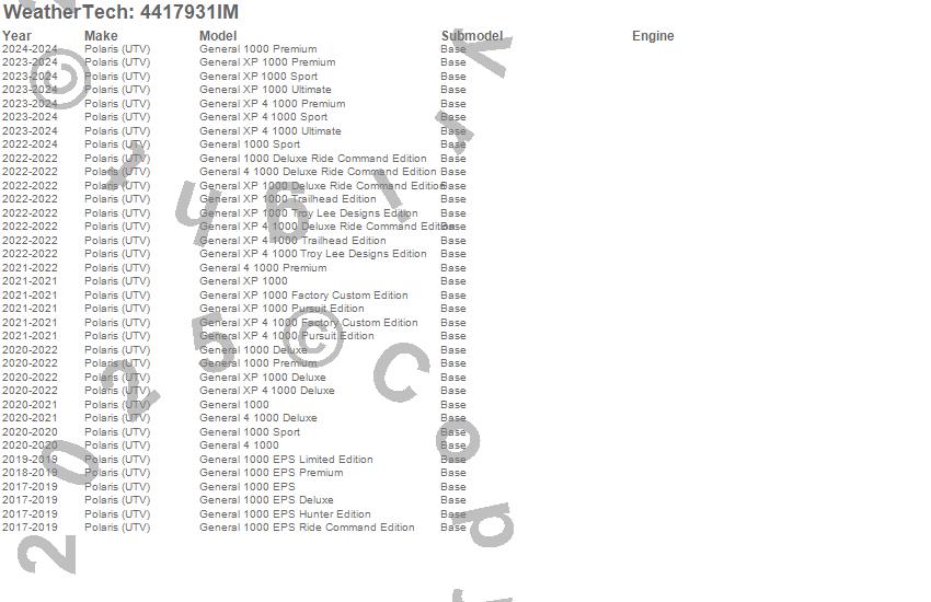 Below is an abbreviated list of applications for the FloorLiner HP.General 1000, General 1000 Deluxe, General 1000 Deluxe Ride Command Edition, General 1000 EPS, General 1000 EPS Deluxe, General 1000 EPS Hunter Edition, General 1000 EPS Limited Edition, General 1000 EPS Premium, General 1000 EPS Ride Command Edition, General 1000 Premium, General 1000 Sport, General 4 1000, General 4 1000 Deluxe, General 4 1000 Deluxe Ride Command Edition, General 4 1000 Premium, General 4 1000 Sport, General XP 1000, General XP 1000 Deluxe, General XP 1000 Deluxe Ride Command Edition, General XP 1000 Factory Custom Edition