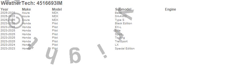 Below is an abbreviated list of applications for the FloorLiner HP.MDX, Pilot, Acura, Honda, 2026, 2025, 2024, 2023, 2022