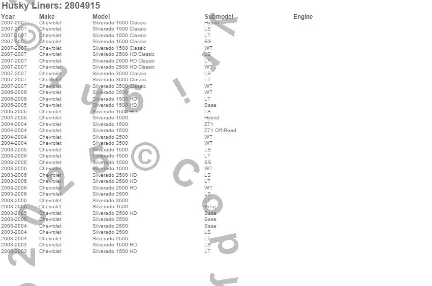 Below is an abbreviated list of applications for the Fender Flares.Silverado 1500, Silverado 1500 Classic, Silverado 1500 HD, Silverado 2500, Silverado 2500 HD, Silverado 2500 HD Classic, Silverado 3500, Silverado 3500 Classic, Chevrolet, 2007, 2006, 2005, 2004, 2003