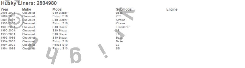 Below is an abbreviated list of applications for the Fender Flares.S10 Blazer, S10 Pickup, Chevrolet, 2005, 2004, 2003, 2002, 2001, 2000, 1999, 1998, 1997, 1996, 1995, 1994