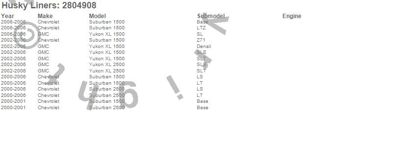 Below is an abbreviated list of applications for the Fender Flares.Suburban 1500, Suburban 2500, Yukon XL 1500, Yukon XL 2500, Chevrolet, GMC, 2006, 2005, 2004, 2003, 2002, 2001, 2000