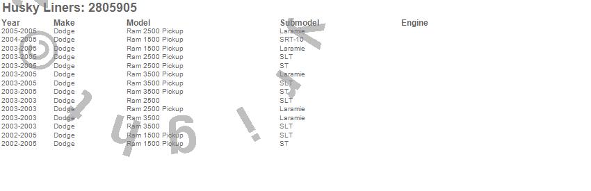 Below is an abbreviated list of applications for the Fender Flares.Ram 1500, Ram 2500, Ram 3500, Dodge, 2005, 2004, 2003, 2002