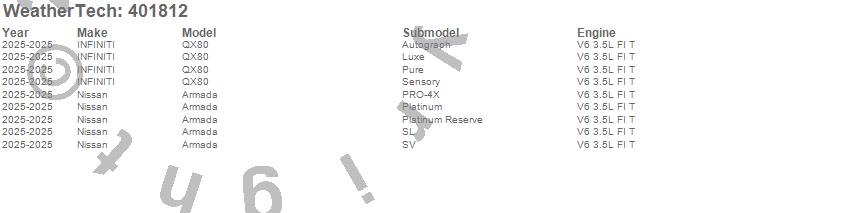 Below is an abbreviated list of applications for the Cargo Liner.Armada, QX80, INFINITI, Nissan, 2026, 2025