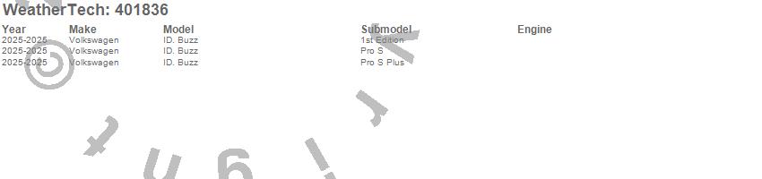 Below is an abbreviated list of applications for the Cargo Liner.ID. Buzz, Volkswagen, 2025