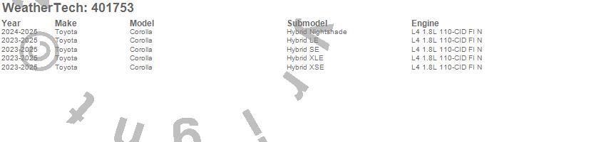 Below is an abbreviated list of applications for the Cargo Liner.Corolla, Toyota, 2025, 2024, 2023