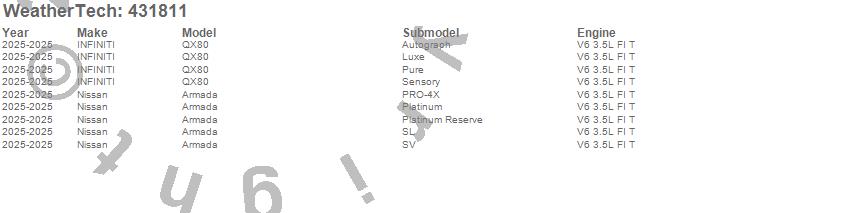 Below is an abbreviated list of applications for the Cargo Liner.Armada, QX80, INFINITI, Nissan, 2026, 2025