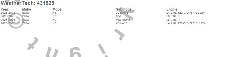 Below is an abbreviated list of applications for the Cargo Liner.X3, BMW, 2025