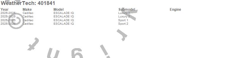 Below is an abbreviated list of applications for the Cargo Liner.ESCALADE IQ, ESCALADE IQL, Cadillac, 2026, 2025