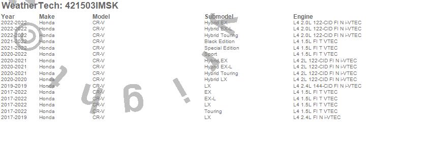 Below is an abbreviated list of applications for the SeatBack Cargo Liner HP w/Bumper Protector.CR-V, Honda, 2022, 2021, 2020, 2019, 2018, 2017