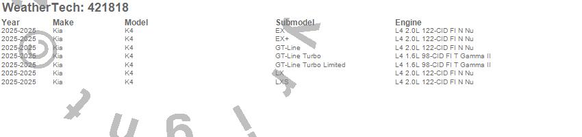 Below is an abbreviated list of applications for the Cargo Liner.K4, Kia, 2025
