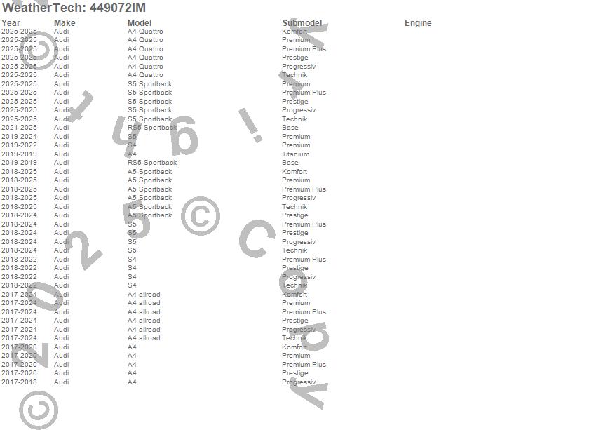 Below is an abbreviated list of applications for the FloorLiner HP.A4, A4 allroad, A4 Quattro, A5 Sportback, RS5 Sportback, S4, S5, S5 Sportback, Audi, 2025, 2024, 2023, 2022, 2021, 2020, 2019, 2018, 2017