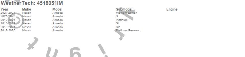 Below is an abbreviated list of applications for the FloorLiner HP.Armada, Nissan, 2024, 2023, 2022, 2021, 2020, 2019