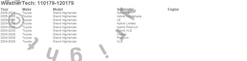 Below is an abbreviated list of applications for the MudFlap No-Drill DigitalFit MudFlap Kit.Grand Highlander, Toyota, 2026, 2025, 2024