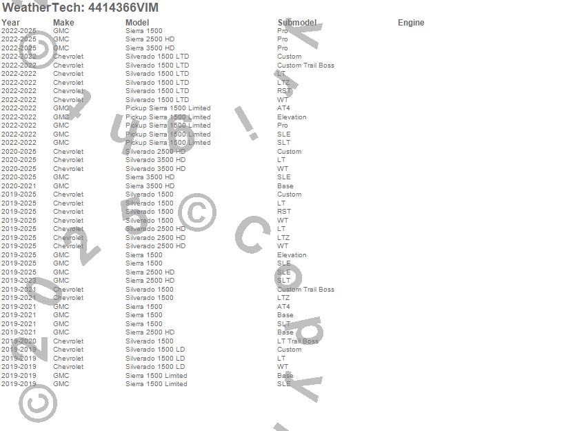 Below is an abbreviated list of applications for the FloorLiner HP.Pickup Sierra 1500 Limited, Sierra 1500, Sierra 1500 Limited, Sierra 2500 HD, Sierra 3500 HD, Silverado 1500, Silverado 1500 LD, Silverado 1500 LTD, Silverado 2500 HD, Silverado 3500 HD, Chevrolet, GMC, 2026, 2025, 2024, 2023, 2022, 2021, 2020, 2019
