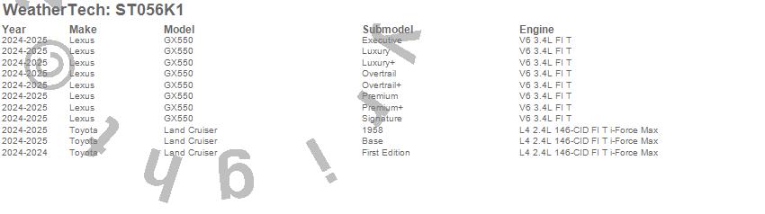 Below is an abbreviated list of applications for the Sill Protector.GX550, Land Cruiser, Lexus, Toyota, 2026, 2025, 2024