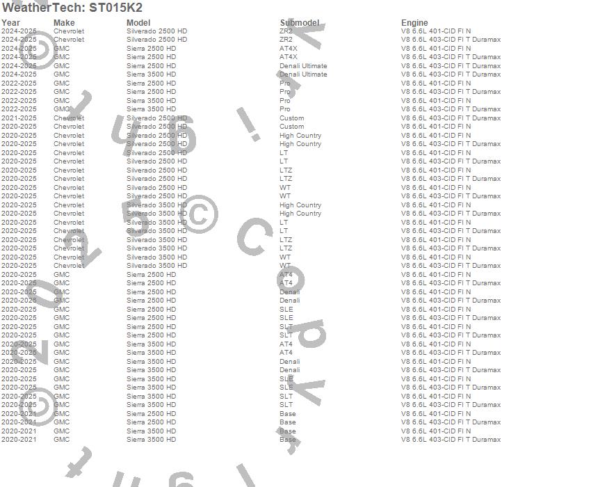 Below is an abbreviated list of applications for the Sill Protector.Sierra 2500 HD, Sierra 3500 HD, Silverado 2500 HD, Silverado 3500 HD, Chevrolet, GMC, 2026, 2025, 2024, 2023, 2022, 2021, 2020