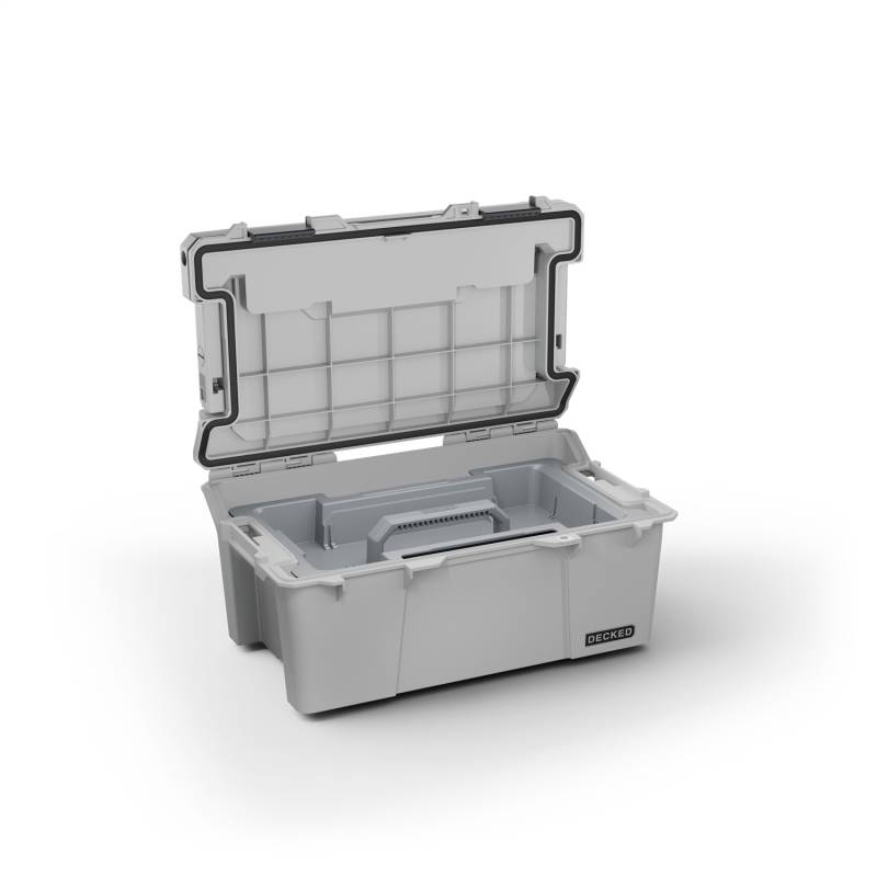Brand: DECKEDPart Number: A0010-SIXR-GRYTruck Bed Storage Box Type: Includes D-Co Tray - Cool Gray w/Black LatchesUPC: 815294022832