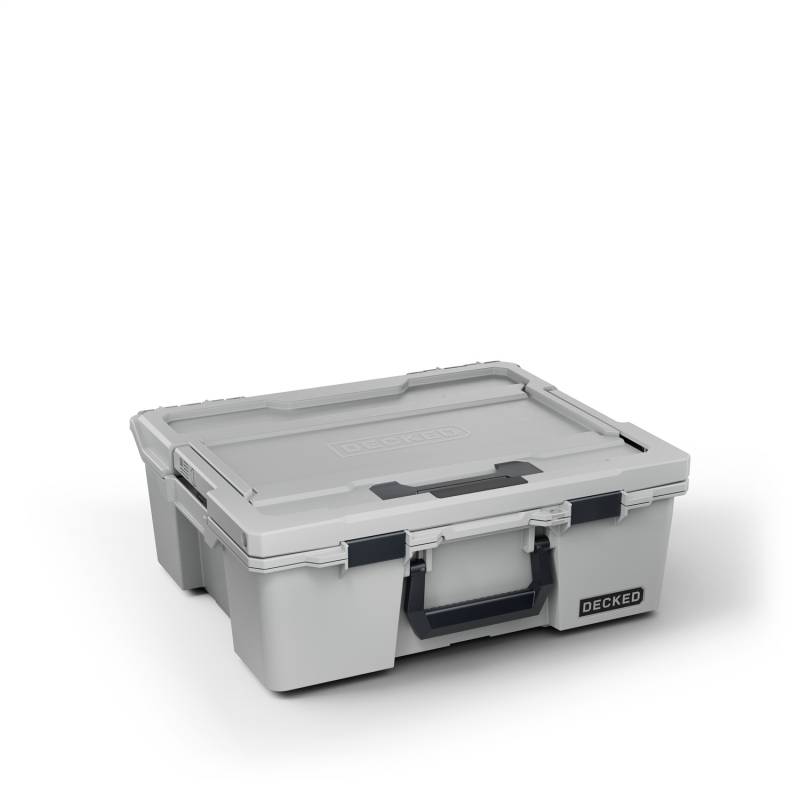 Buy this Halfrack 32 D-co Case DECKED A0020-HRAK-GRY Includes D-Co Tray - Cool Gray w/Black Latches here at SVCustoms.com an authorized DECKED Truck Bed Storage Box dealer and distributor.
