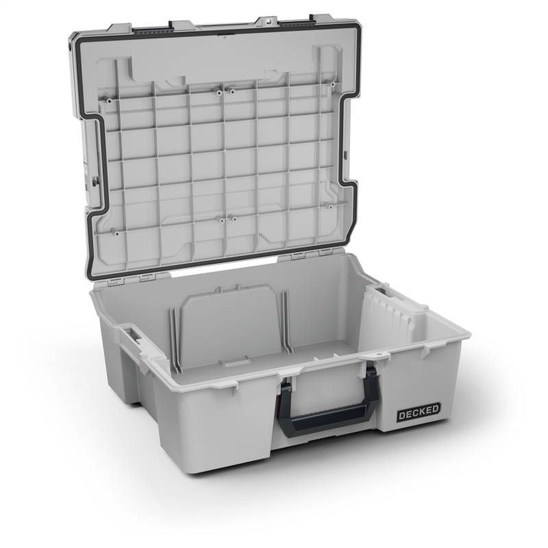 Brand: DECKEDPart Number: A0020-HRAK-GRYTruck Bed Storage Box Type: Includes D-Co Tray - Cool Gray w/Black LatchesUPC: 815294022825
