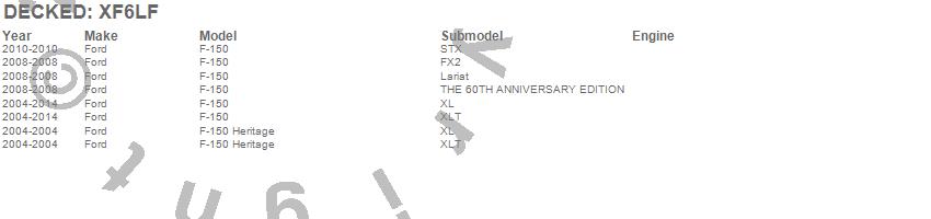 Below is an abbreviated list of applications for the DECKED Two Drawer Storage System.F-150, F-150 Heritage, Ford, 2014, 2013, 2012, 2011, 2010, 2009, 2008, 2007, 2006, 2005, 2004