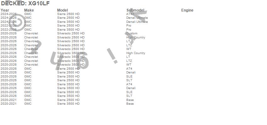 Below is an abbreviated list of applications for the DECKED Two Drawer Storage System.Sierra 2500 HD, Sierra 3500 HD, Silverado 2500 HD, Silverado 3500 HD, Chevrolet, GMC, 2026, 2025, 2024, 2023, 2022, 2021, 2020