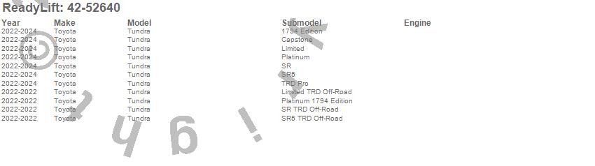 Below is an abbreviated list of applications for the MAX Suspension System.Tundra, Toyota, 2024, 2023, 2022