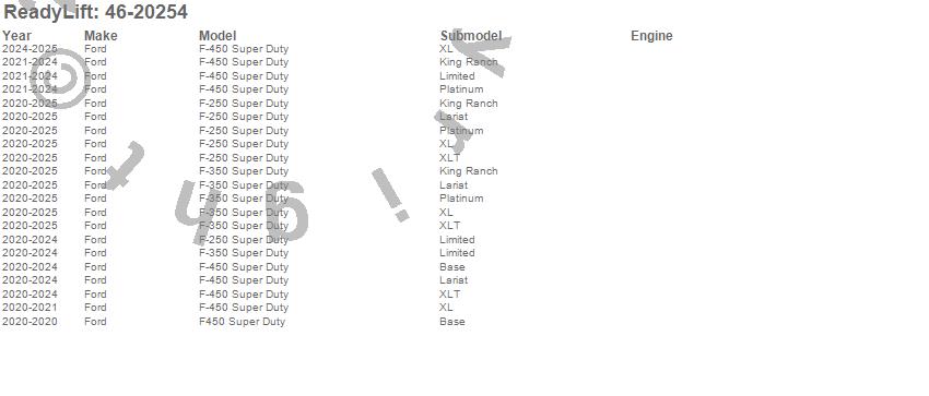 Below is an abbreviated list of applications for the Coil Spring Lift Kit.F-250 Super Duty, F-350 Super Duty, F-450 Super Duty, F450 Super Duty, Ford, 2025, 2024, 2023, 2022, 2021, 2020