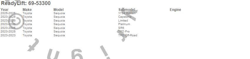 Below is an abbreviated list of applications for the SST Lift Kit.Sequoia, Toyota, 2025, 2024, 2023
