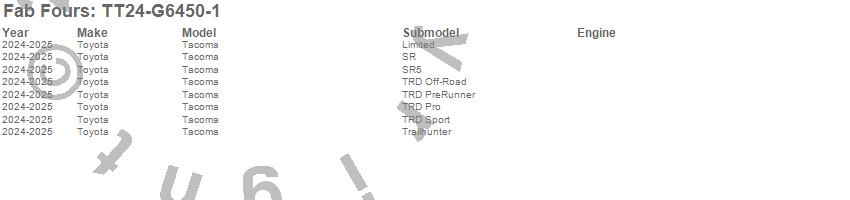 Brand: Fab FoursPart Number: TT24-G6450-1Rocker Panel Guard Type: 125 lbs. Weight - Matte Black Powder CoatUPC: 840173726754