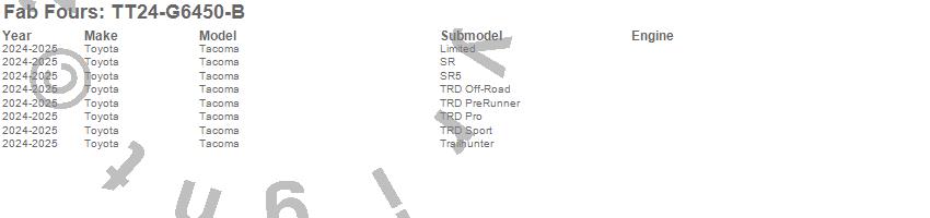 Brand: Fab FoursPart Number: TT24-G6450-BRocker Panel Guard Type: 125 lbs. Weight - BareUPC: 840193726765