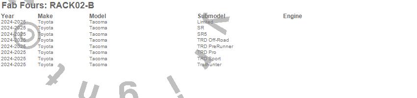 Below is an abbreviated list of applications for the Half Rack.Tacoma, Toyota, 2025, 2024