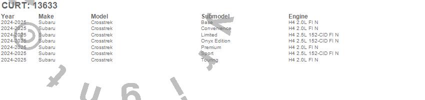 Below is an abbreviated list of applications for the Class III 2 in. Receiver Hitch.Crosstrek, Subaru, 2025, 2024