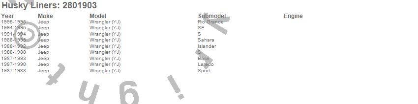 Below is an abbreviated list of applications for the Fender Flares.Wrangler (YJ), Jeep, 1995, 1994, 1993, 1992, 1991, 1990, 1989, 1988, 1987
