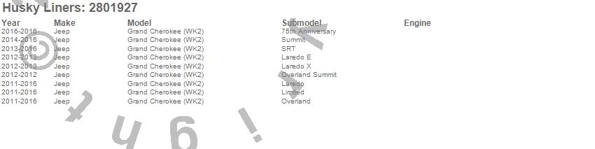 Below is an abbreviated list of applications for the Fender Flares.Grand Cherokee (WK2), Jeep, 2016, 2015, 2014, 2013, 2012, 2011
