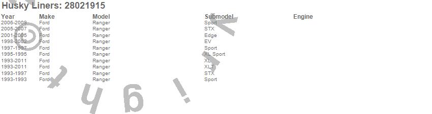 Below is an abbreviated list of applications for the Fender Flares.Ranger, Ford, 2011, 2010, 2009, 2008, 2007, 2006, 2005, 2004, 2003, 2002, 2001, 2000, 1999, 1998, 1997, 1996, 1995, 1994