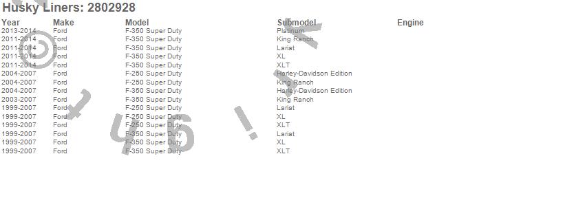 Below is an abbreviated list of applications for the Fender Flares.F-250 Super Duty, F-350 Super Duty, Ford, 2014, 2013, 2012, 2011, 2007, 2006, 2005, 2004, 2003, 2002, 2001, 2000, 1999