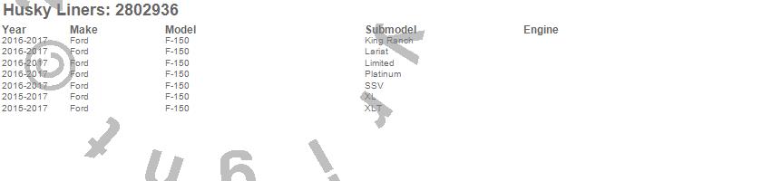 Brand: Husky LinersPart Number: 2802936Fender Flare Type: Black - 4 pc. - ABS Thermoplastic - No Drilling Required - Extend-a-FenderUPC: 753933002350